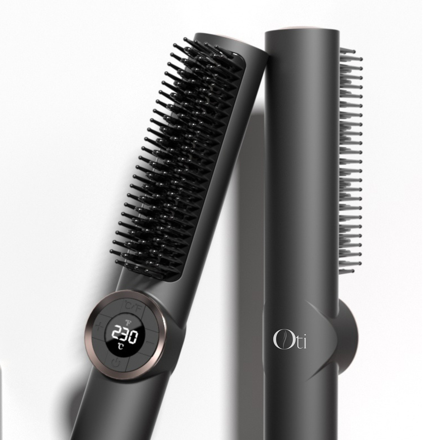 Oti’s 2-in-1 Hot Brush straightens or curls as you brush — helping you get ready faster without the struggle of traditional straighteners or curlers.